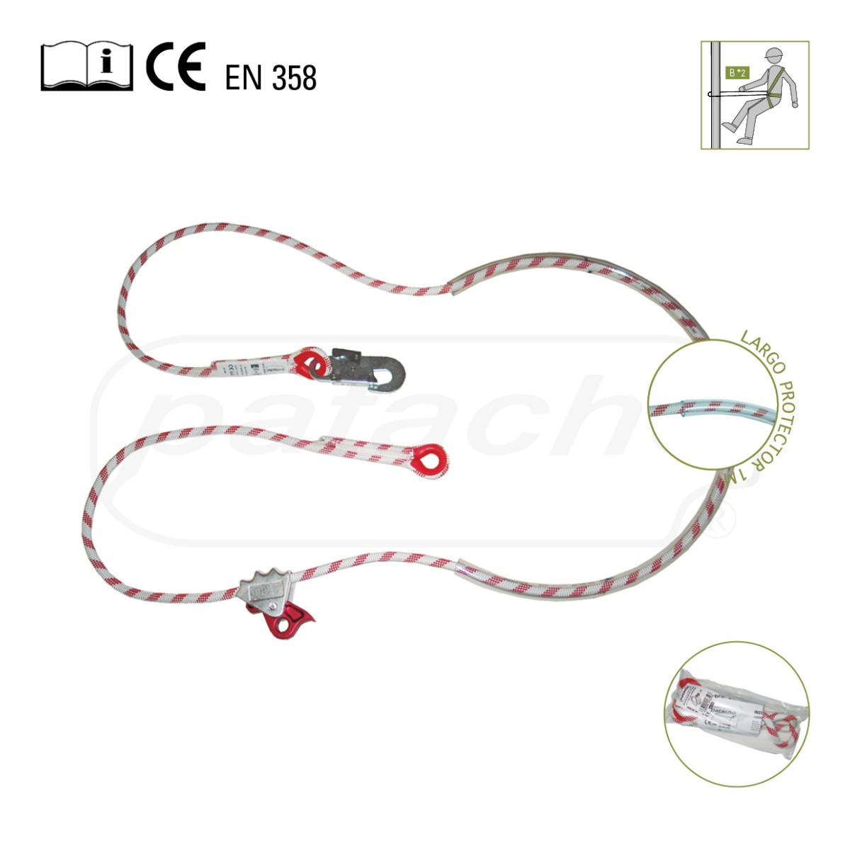 Elemento de posicionamiento en cuerda con ajuste automático de 3 metros y 12 mm de diámetro, realizado en cuerda tipo A, EN-1891.